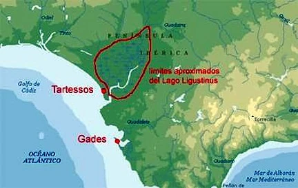 Localização de Tartessos e Gades, no sudoeste da Espanha
