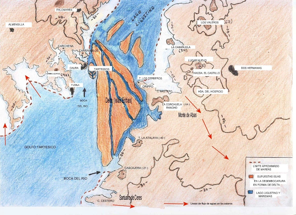 Interpretação especulativa das vizinhanças de Tartessos: a cidade no delta do rio, cidadela de Gerião (Caura) e as Ilhas Eritias