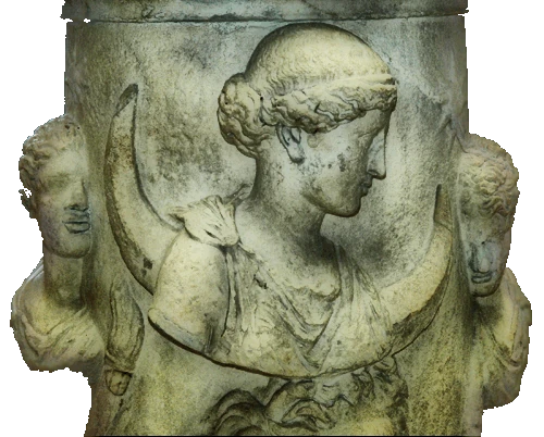 A deusa Selene, ladeada por Eósforo e Héspero (II século a.C.)