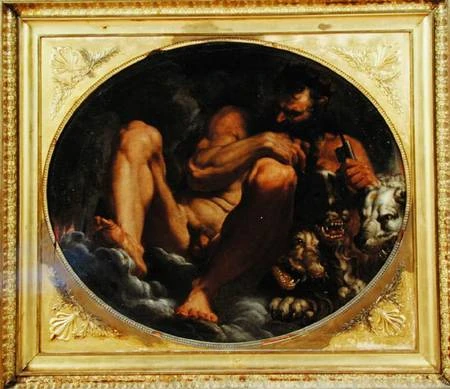Plutão, de Agostino Carracci (1592), com Cérbero e a chave do seu reino