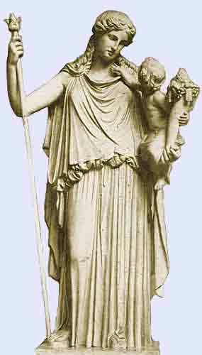 Irene, a Paz, mármore romano (reconstrução) com Pluto ("Riqueza") ao colo.