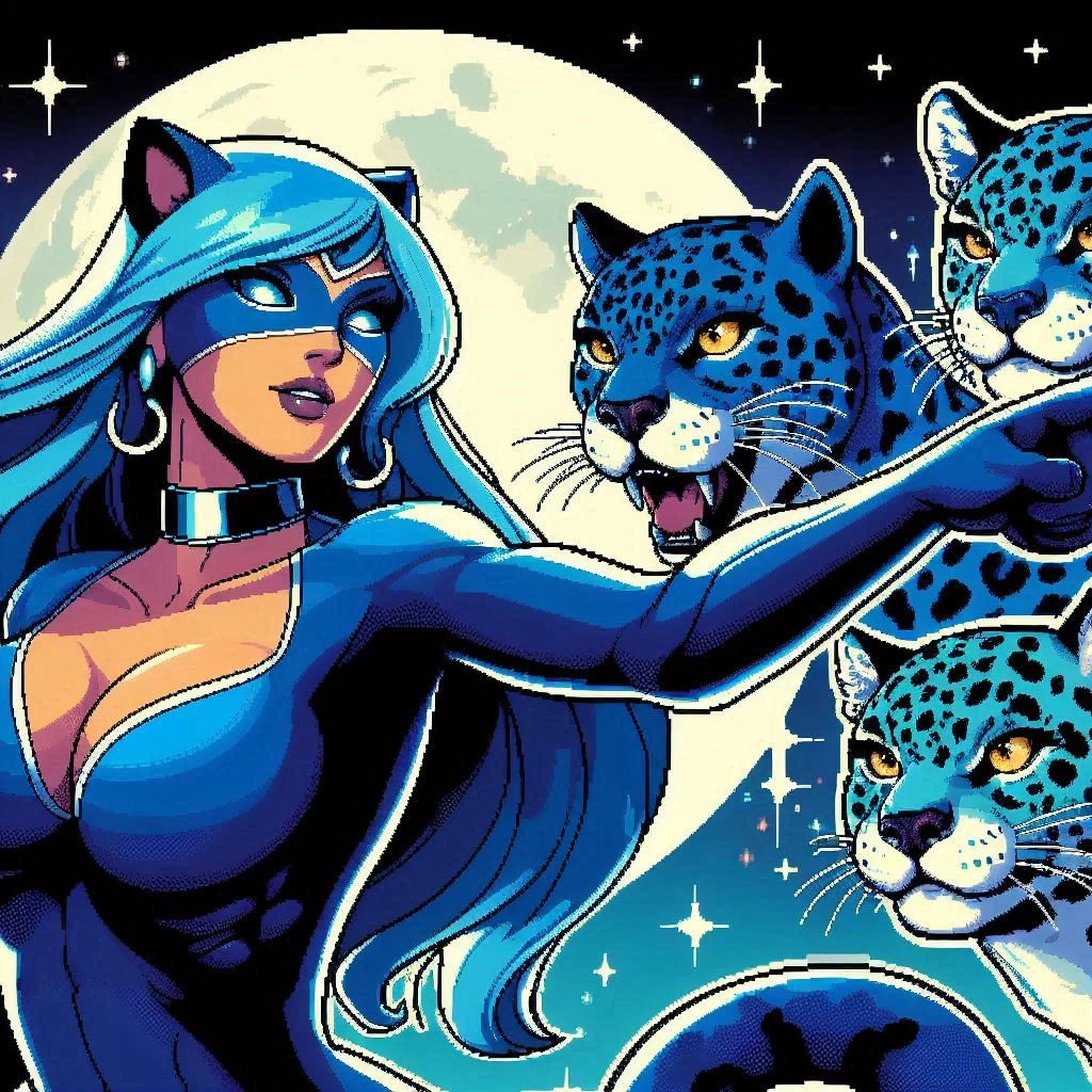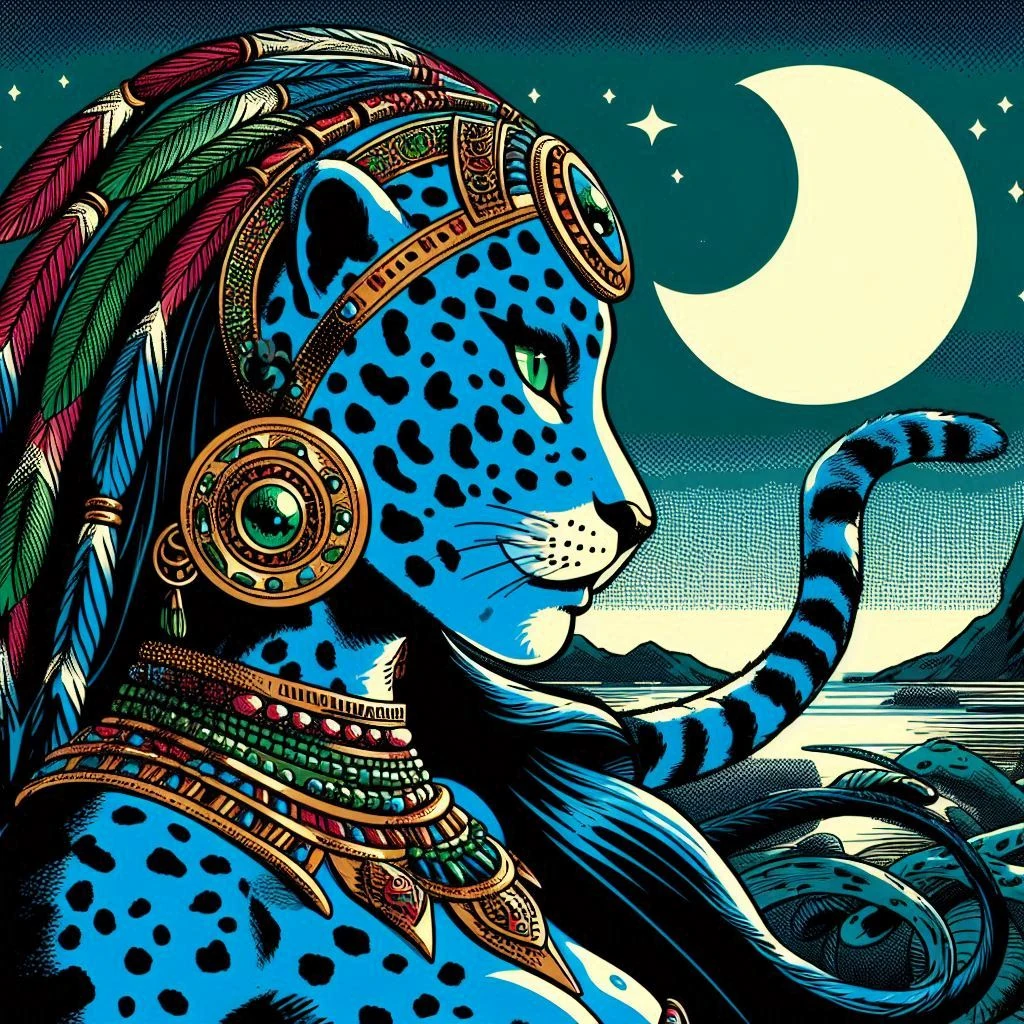 Do outro lado, existia o Jaguar Azul, uma criatura não menos temida, com pelagem que cintilava como o brilho da lua refletido em águas turvas. O Jaguar Azul não buscava a aniquilação completa como a Onça Celeste, mas desejava submeter o mundo a uma ordem rígida, cruel e impiedosa. Ele personificava o domínio absoluto, onde as regras eram tão severas que não havia espaço para a liberdade, apenas obediência cega. Onde ele passava, as criaturas viviam sob um medo constante, forçadas a seguir leis inflexíveis que esmagavam a esperança e a alegria.