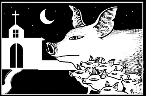 Porca-dos-sete-leitões, ilustração de Marcos Jardim