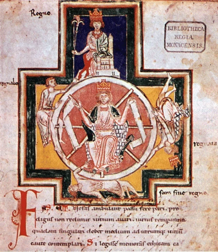 A Fortuna Governa o Mundo, iluminura em manuscrito de Carmina Burana, século XII